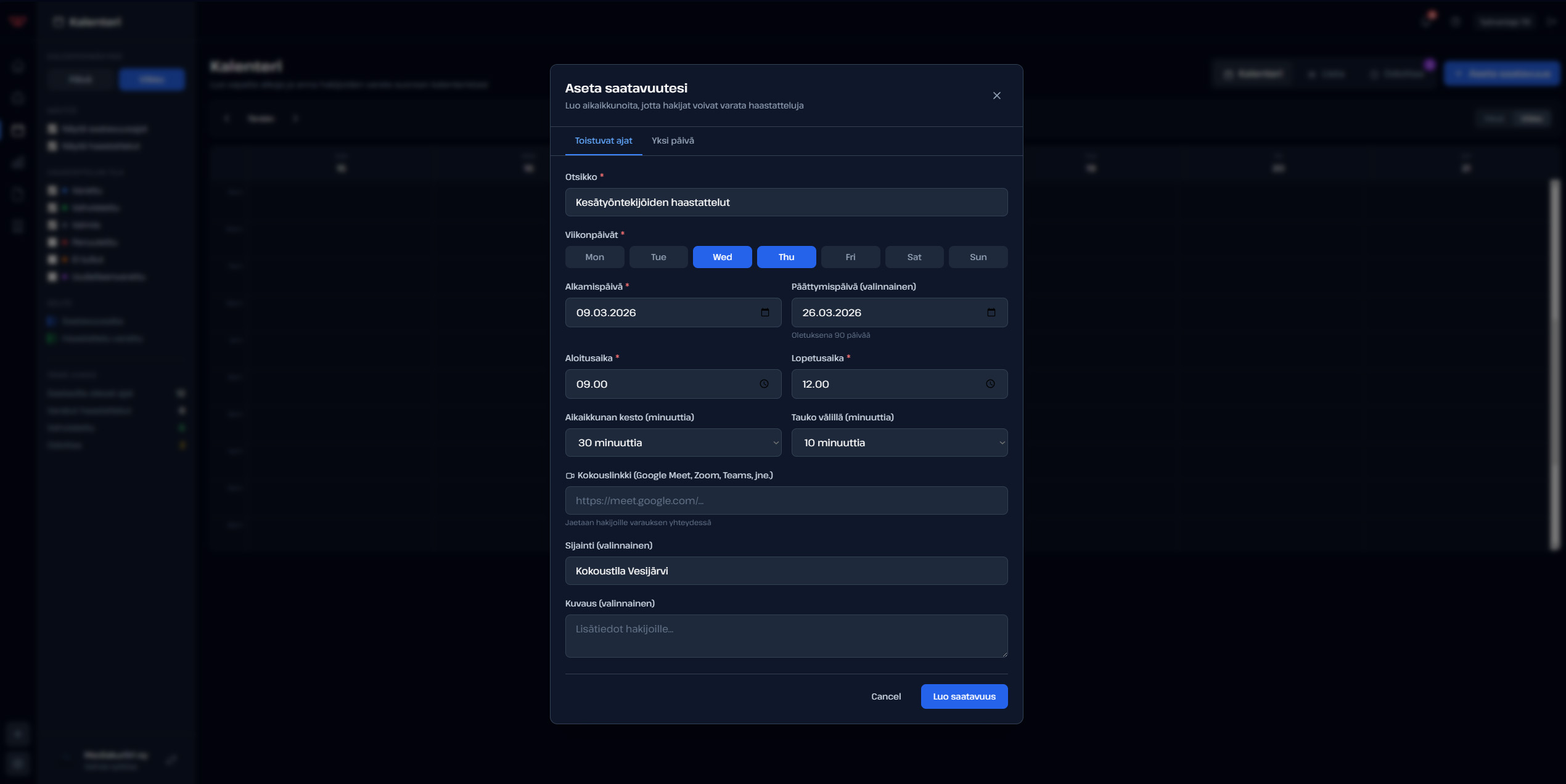 Kutsu haastatteluihin suoraan kalenterista yhdellä klikkauksella.
