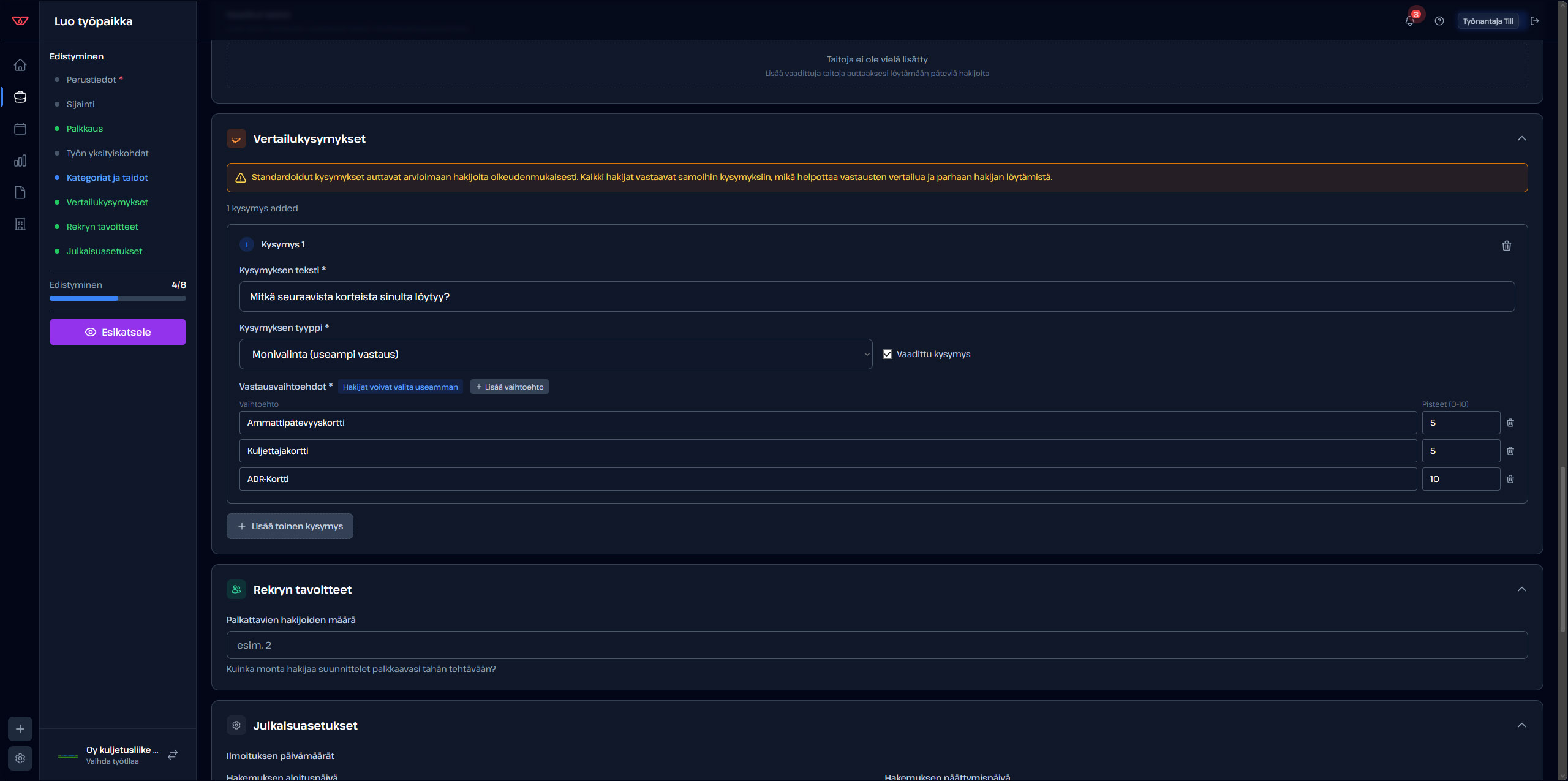 Workbana arvioi hakijat automaattisesti ennalta määritettyjen vertailukysymysten perusteella ja laskee WB Scoren, joka kertoo heti, kuka sopii tehtävään parhaiten.