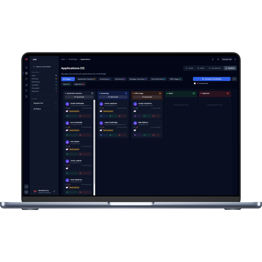 Haluatko nähdä, miten Workbana Studio toimii käytännössä tai keskustella, sopiiko se teidän rekrytointiin? Ota yhteyttä, niin käydään asiat läpi nopeasti ja selkeästi.